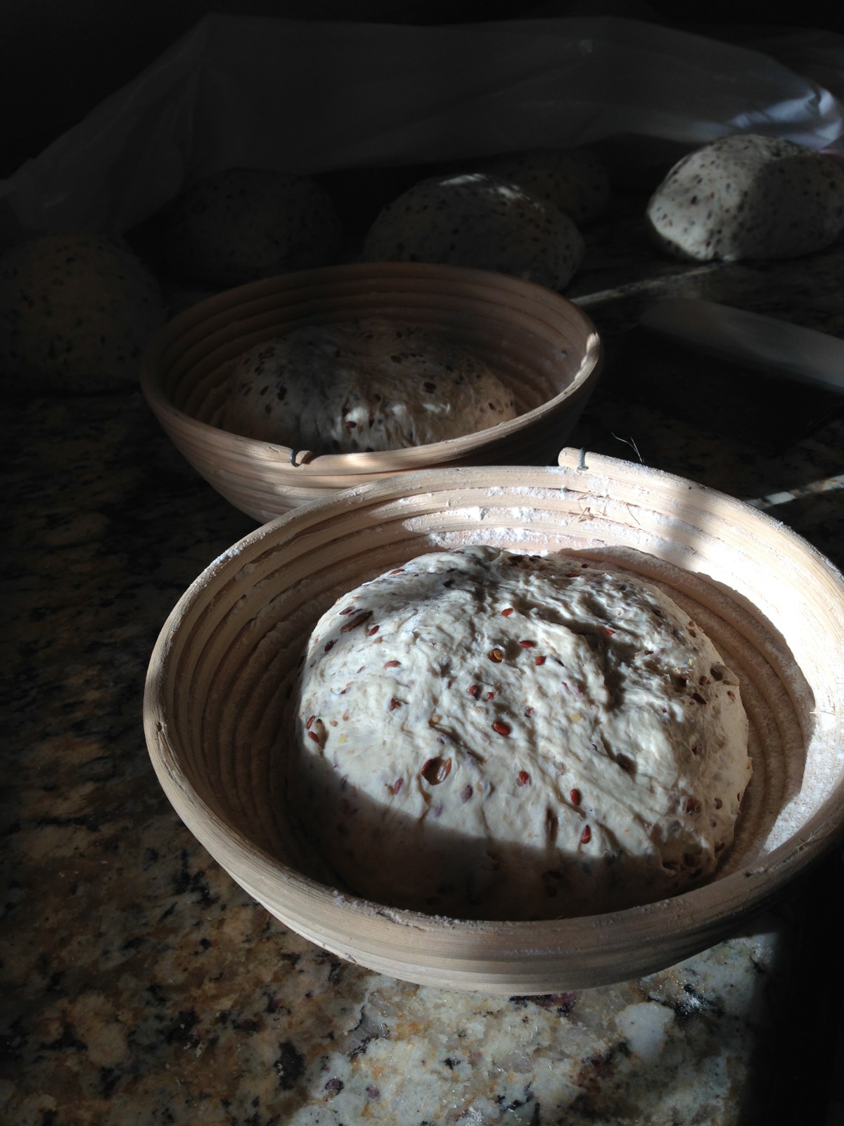 Bread in the best of the ancient tradition. We use a lot of water and fire to achieve a bread that has a dark, crisp crust and creamy, moist interior. A flavorful multigrain bread with flax, pumpkin, sesame and sunflower seeds. The base is a blend of wheat flour, whole rye flour & whole wheat flour. Our best seller!